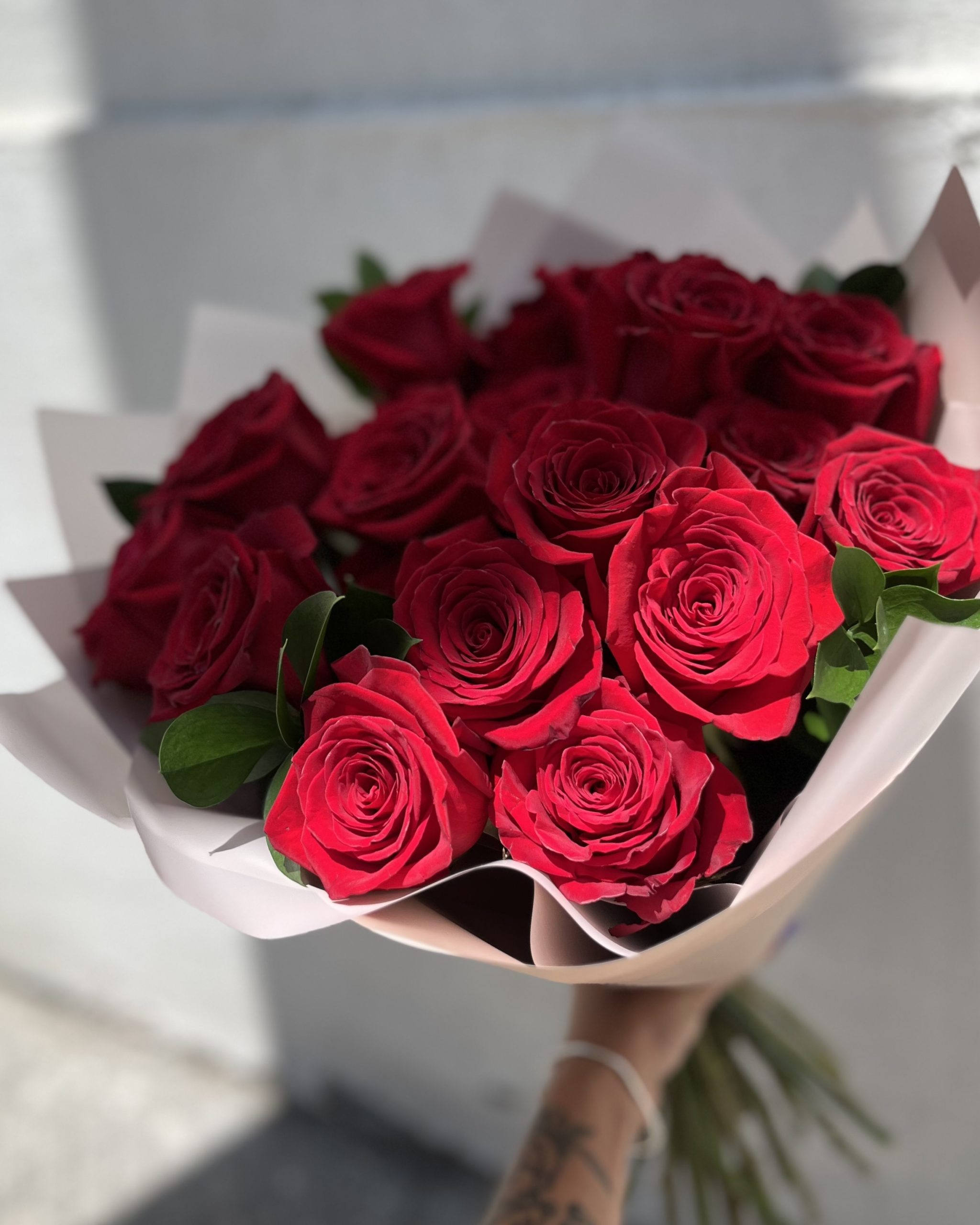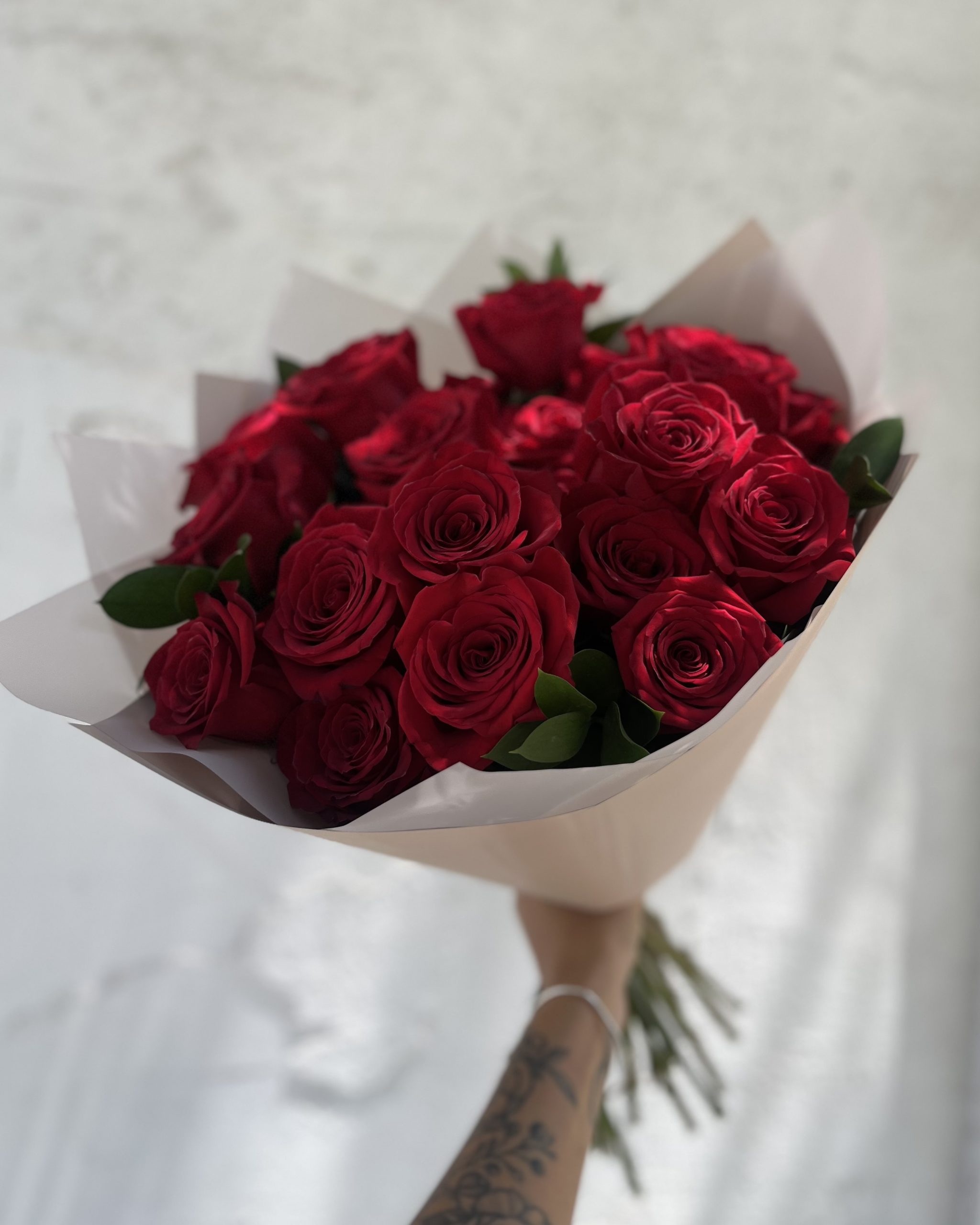 Ramo de 22 rosas rojas, envueltas en nuestra papelería 14 F.