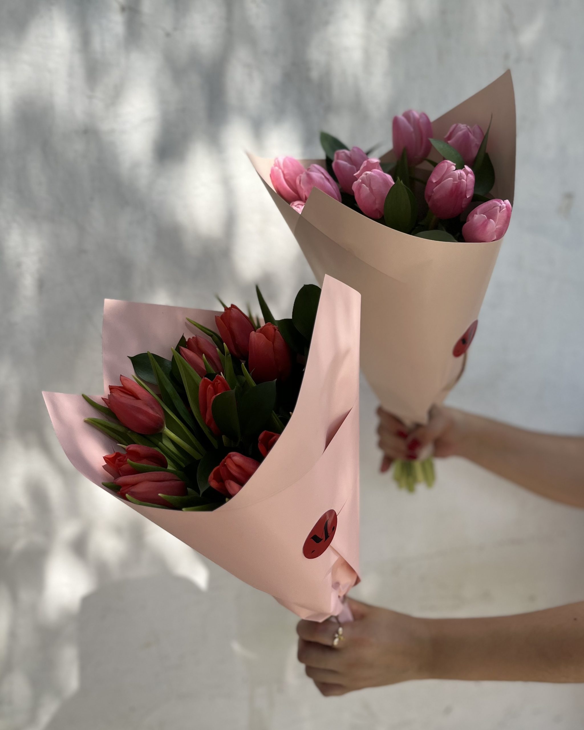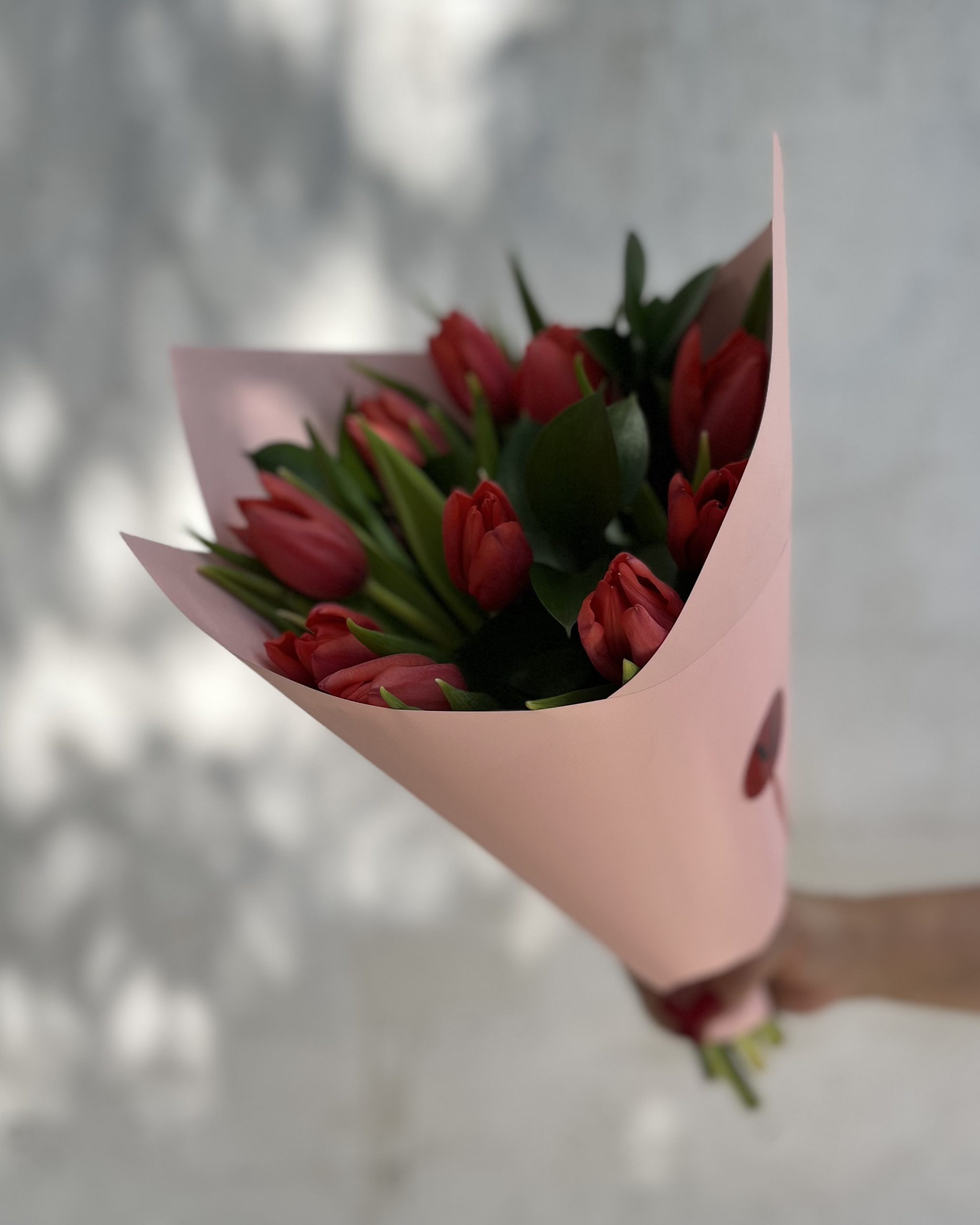 Ramo de 10 varas de tulipanes + follaje, envueltos en nuestra papelería 14 F.